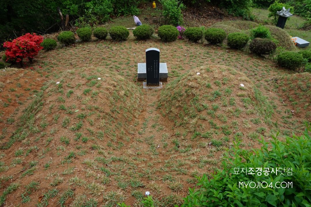 경기도 파주시 광탄면 분수리 야산에 모신 개인 합장묘의 잔디입히기 후의 모습입니다.