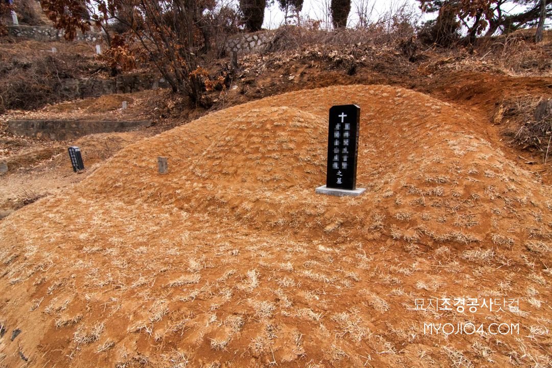 서울시립 용미리 제1묘지 300구역 조성묘 최**님 산소에 잔디입히기 작업 후의 모습입니다.